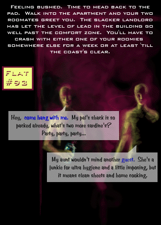 You have to find a place to crash tonight. What will it be-- partying hard at a tiny pad with strangers or a quiet night of clean sheets and home-cooking? <Previous Graphic> <Next Graphic> <Back to Portfolio>